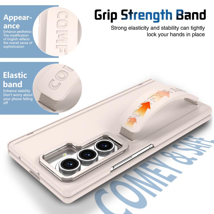 Funda para teléfono con soporte para lente integrada y correa para Samsung Galaxy Z Fold7 (albaricoque)