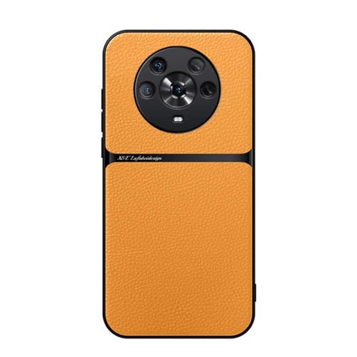 Funda para Teléfono Honor Magic4 con Tapa Magnética Cuero Litchi y Protección Total (Amarillo)