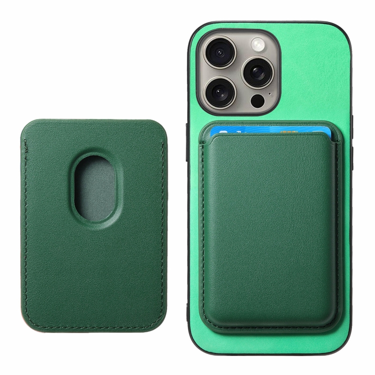 Funda para Teléfono PU con Tapa Trasera y Tarjetero Magsafe para iPhone 16 Pro Max (Verde)