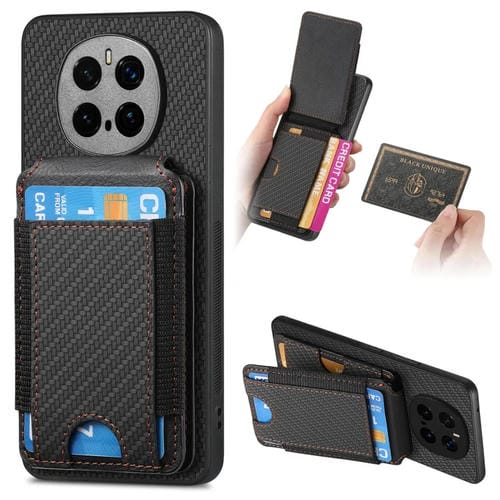 Funda Teléfono Honor Magic7 Pro Tapa Vertical Fibra de Carbono Soporte Billetera (Negra)