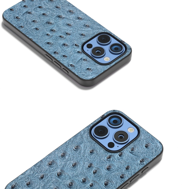 Funda para Teléfono Abeel iPhone 16 Pro Max Textura Avestruz Cuero Genuino (Azul)