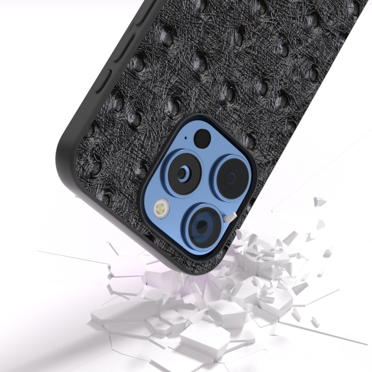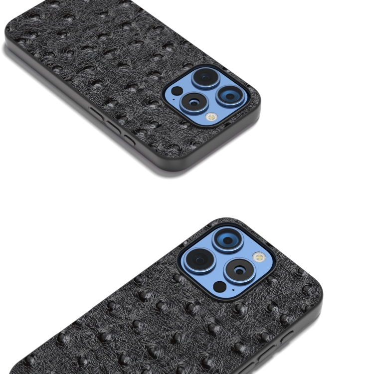 Funda para Teléfono Abeel iPhone 16 Pro Max Textura Avestruz Cuero Genuino (Negro)