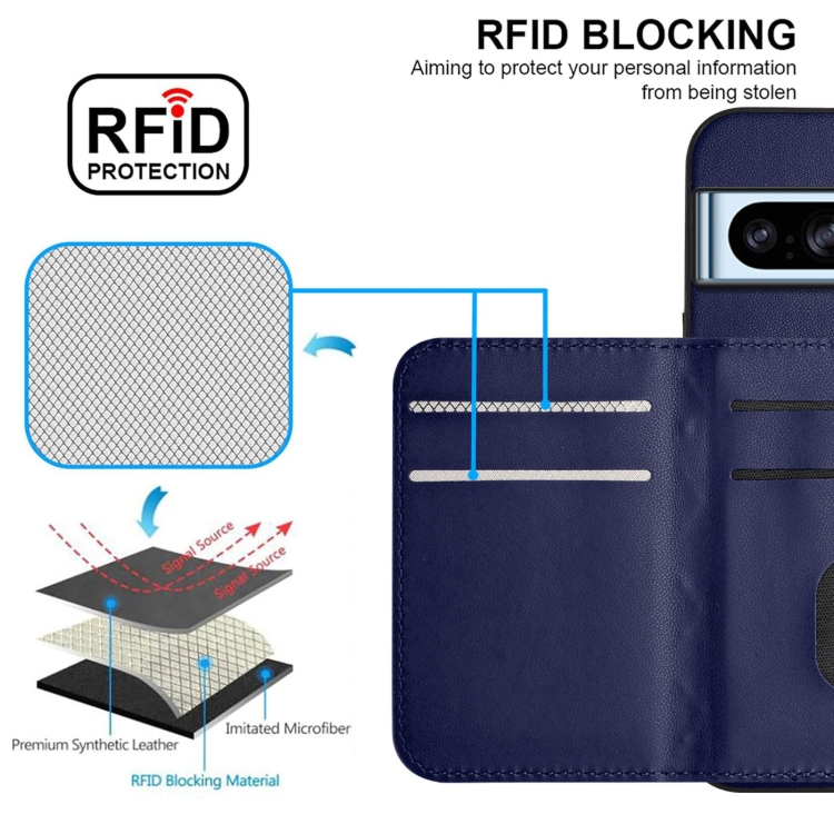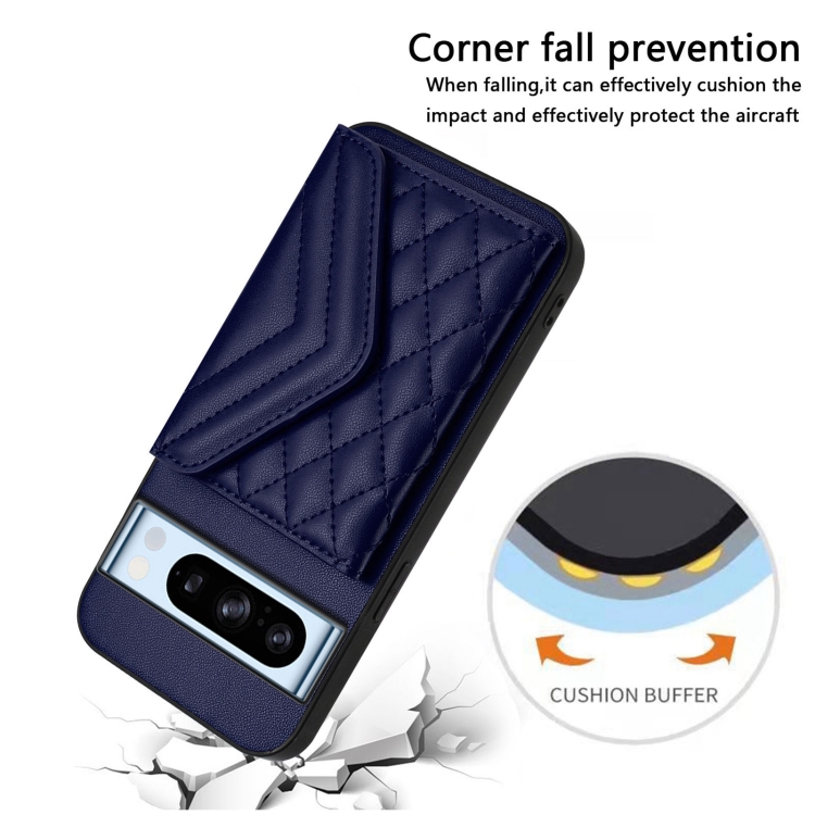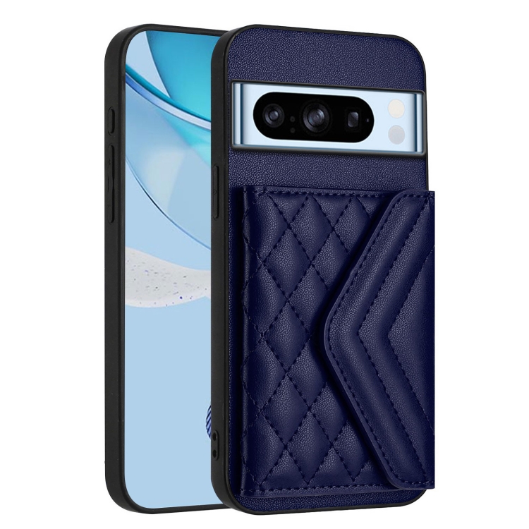 Funda para teléfono Google Pixel 8 Pro con textura rómbica, tarjetero RFID y cordón largo (Azul)
