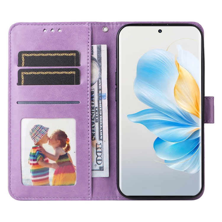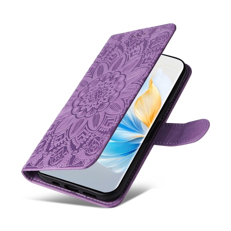 Funda para Teléfono Cuero con Girasol en Relieve For Honor 100 (Púrpura)