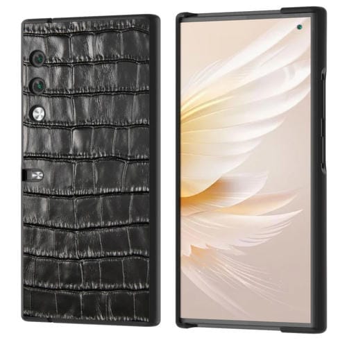 Funda para Teléfono Honor V de Cuero Genuino con Textura de Cocodrilo (Negro)