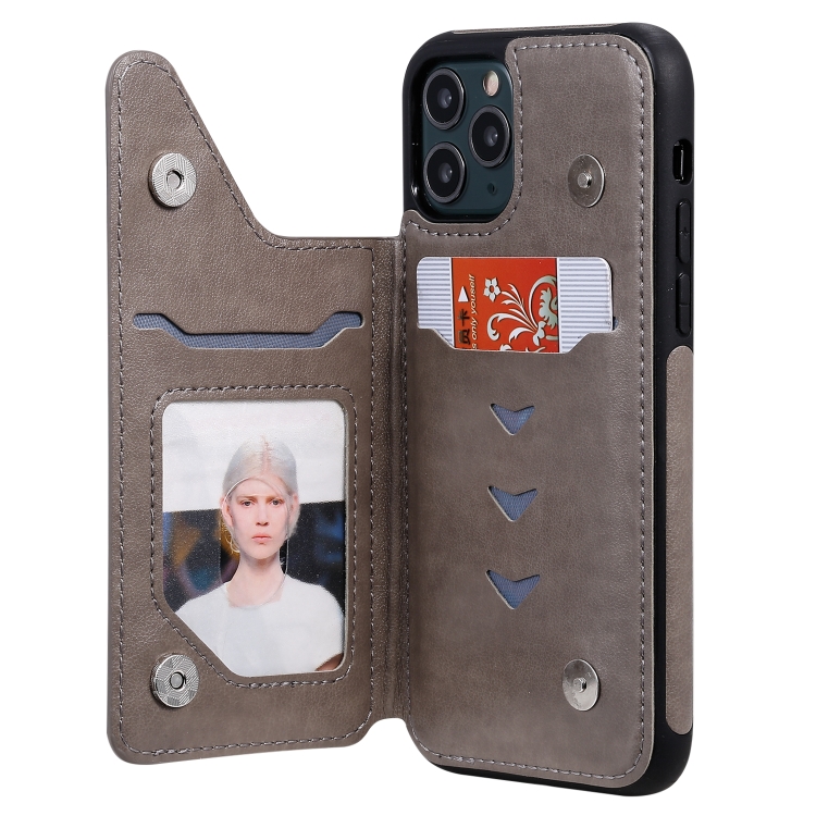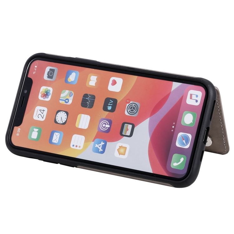 Funda Protectora para iPhone 11 Pro con Soporte, Ranuras para Tarjetas y Marco de Fotos (Gris)
