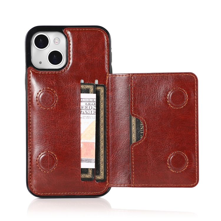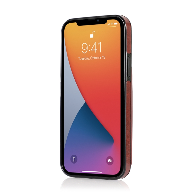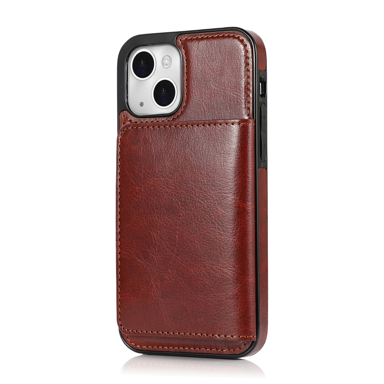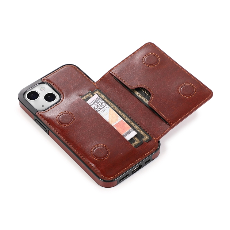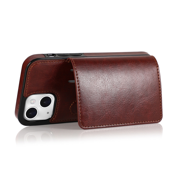 Funda Protectora PU + TPU para iPhone 13 Mini con Ranuras para Tarjetas y Soporte (Marrón)
