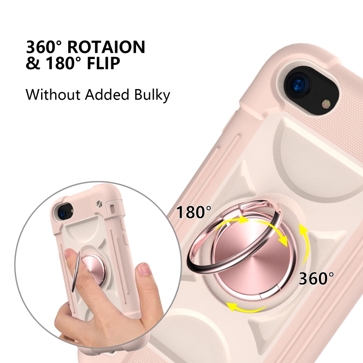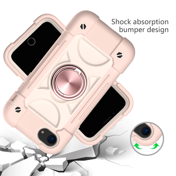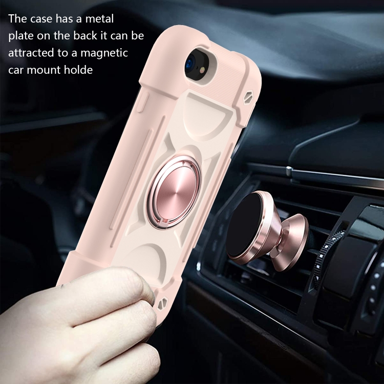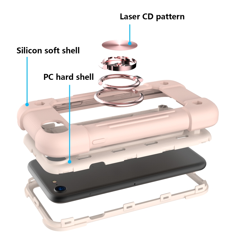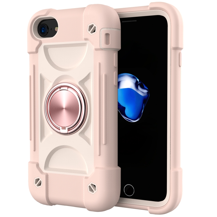 Funda Protectora de Silicona a Prueba de Golpes + PC con Soporte de Anillo Dual para iPhone 6 Plus / 6S Plus / 7 Plus / 8 Plus (Oro Rosa)