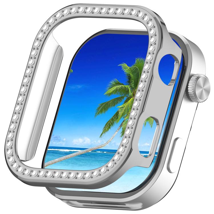 Funda protectora para Redmi Watch 6 con una sola fila de diamantes y media cobertura, hueca para PC (plateada)