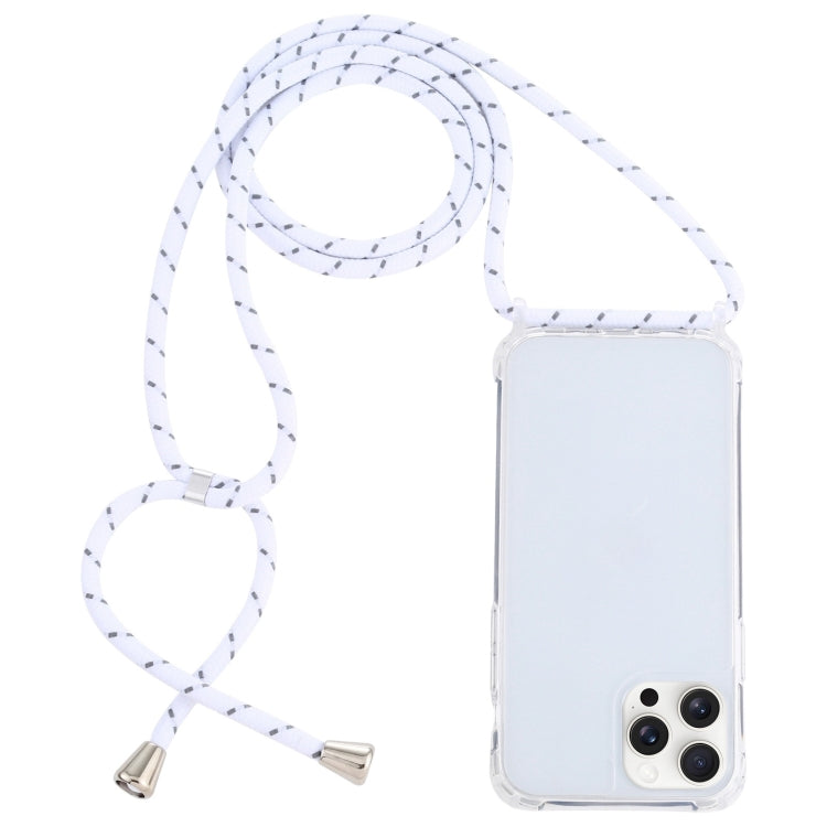 Funda Protectora para Teléfono iPhone 16 Pro Max Airbag Acrílico Transparente con Cordón (Grano Rugoso Blanco y Gris)