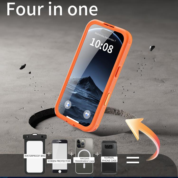 Funda RedPepper IP68 resistente al agua, triple protección MagSafe para iPhone 17 Pro Max (naranja)