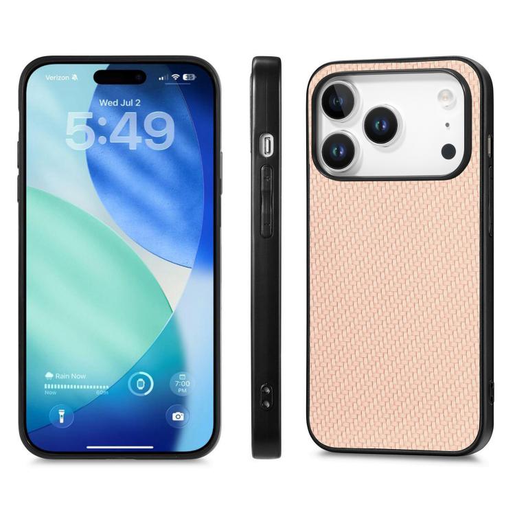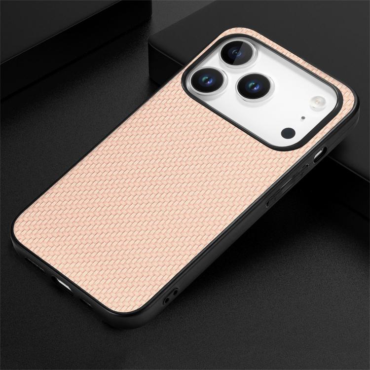 Funda trasera de cuero con textura de fibra de carbono para iPhone 17 Pro (caqui)
