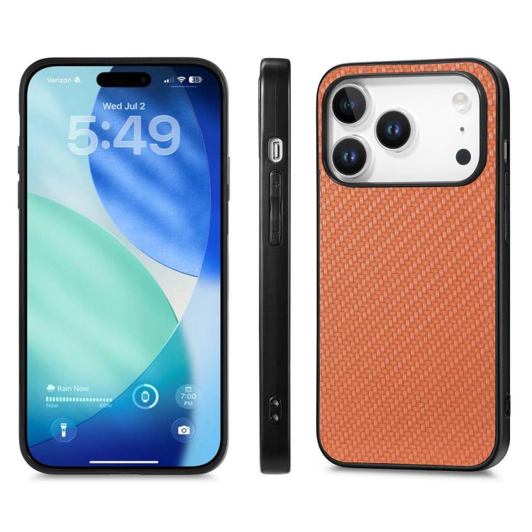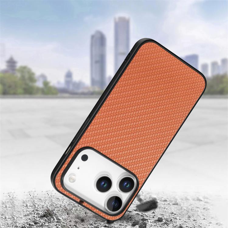 Funda trasera de cuero con textura de fibra de carbono para iPhone 17 Pro (marrón)
