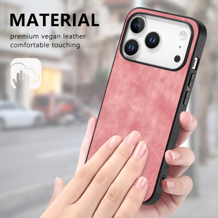 Funda trasera de PC de cuero vintage para iPhone 17 Pro (rosa)