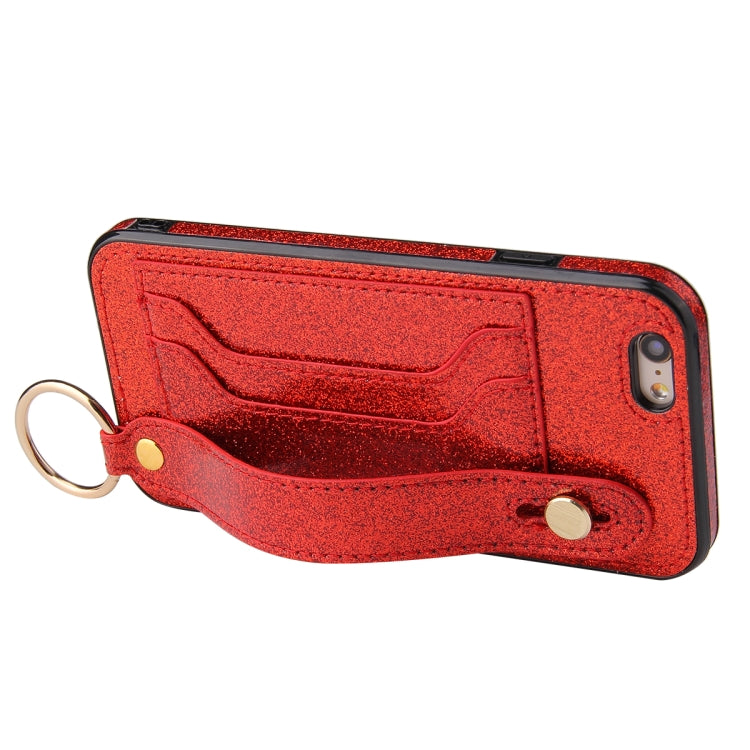Funda Protectora iPhone 6 Plus 6S Plus Glitter Powder PU TPU Soporte Tarjetero Correa (Rojo)