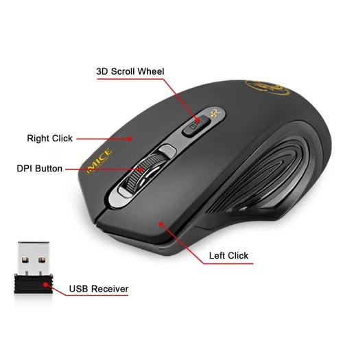 Ratón Óptico de Computadora Imice 2.4Ghz 2000Dpi con Receptor USB 3.0 Ajustable