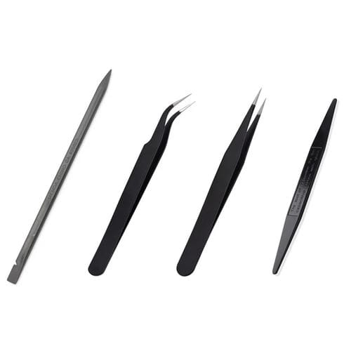 - Incluye 17 herramientas específicas: 2 Placas de palanca metálicas, 1 separador, 2 pinzas, 2 varillas puntiagudas, 2 Tablero Placas de palanca triangulares, 1 ventosa, destornilladores de cruz (2.0 mm y 1.5 mm), destornillador Pentalobe (0.8 mm), destornillador triangular Triwing (0.6 mm), destornillador de ranura (2.0 mm), y destornilladores Torx T5 y T4