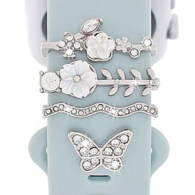 Juego de 4 correas de silicona universales para reloj inteligente, accesorios de metal decorativos (plata)
