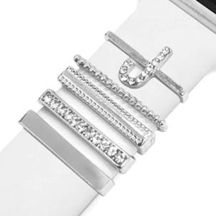 Juego de 5 anillos decorativos de metal con letras para reloj inteligente, estilo J