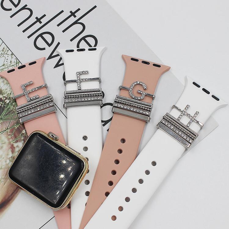 Juego de 5 anillos decorativos de metal con letras para reloj inteligente, estilo W