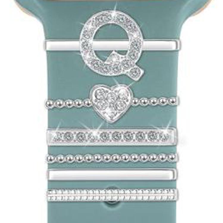 Juego de 6 correas de silicona universales para reloj inteligente, accesorios de metal decorativos, tamaño Q (plata)