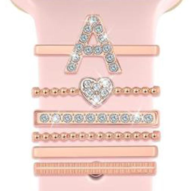 Juego de 6 correas de silicona universales para reloj inteligente, anillos decorativos de metal, tamaño A (oro rosa)
