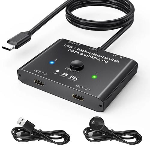 - 1x Conmutador Bidireccional Divisor HD 10 Gbps Tipo-C USB-C KC-C201 8K30