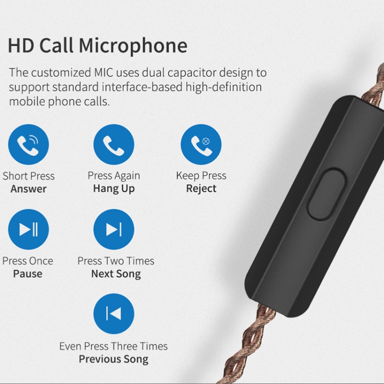 5. El diseño de línea intercambiable de 2 pines trae más espacio para la expansión al auricular, y se puede ampliar para actualizar el auricular Bluetooth