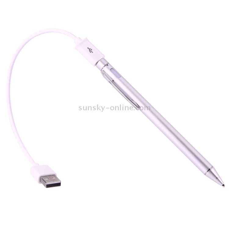 Lápiz óptico recargable universal con punta metálica 2,3 mm para pantalla táctil capacitiva (Plateado)
