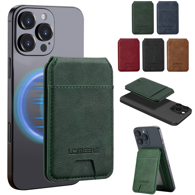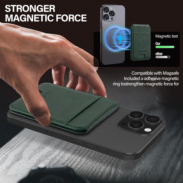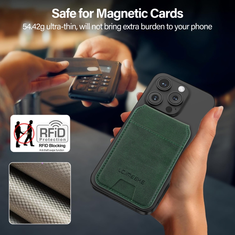 Funda de cuero Lc.Imeeke protección RFID para 3 tarjetas Magsafe (Verde)