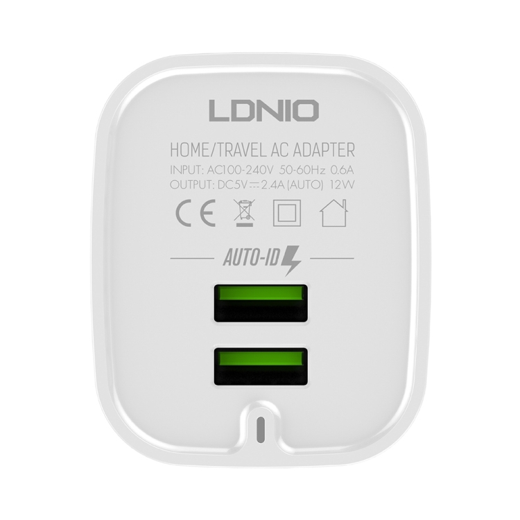 Cabezal de carga Ldnio A201 2.4A USB dual cargador adaptador teléfono móvil con cable 8 pines (Enchufe EE. UU.)