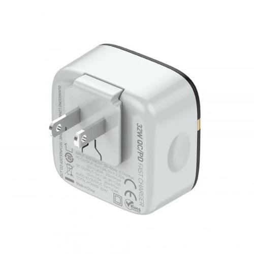 • Potencia total de 32W; salidas PD: 5 V/3 A, 9 V/2,22 A, 12 V/1,67 A (20 W máximo); control de calidad: 5 V/3 A, 9 V/2 A, 12 V/1,5 A (18 W máximo); salida AUTO-ID: 5 V/2,4 A; dimensiones: 5,6 x 5,6 x 3,25 cm