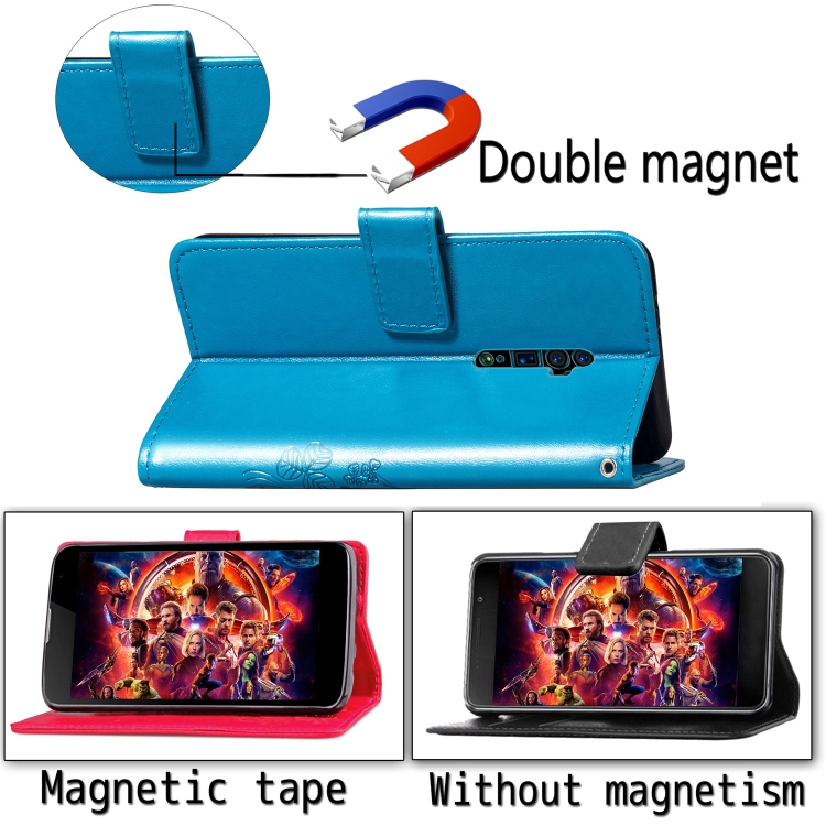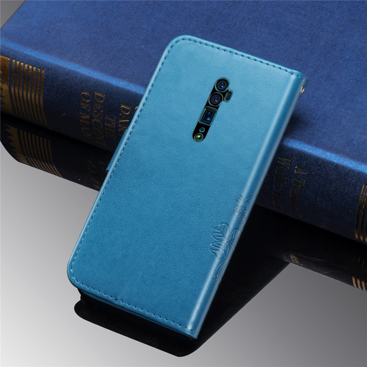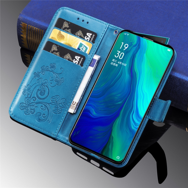 Lucky Clover - Estuche de Cuero con Diseño de Flores Prensadas para Oppo Reno 10X Zoom, con Soporte, Ranuras para Tarjetas, Billetera y Correa de Mano (Azul)