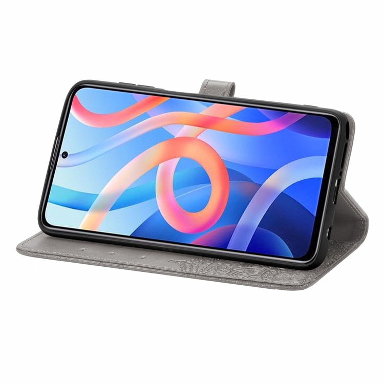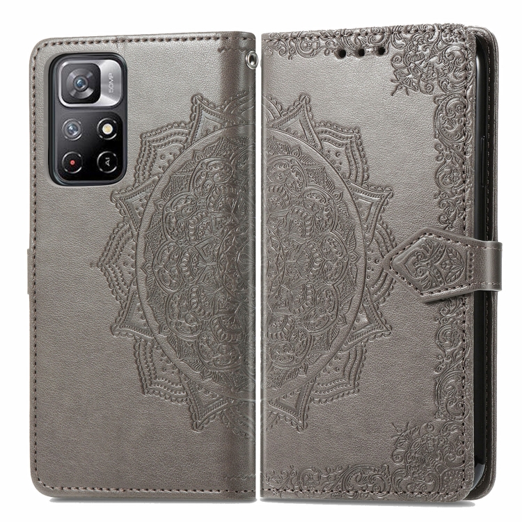 Mandala Flower Funda con estampado en relieve de cuero para Xiaomi Redmi Note 11 (gris)