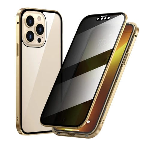 Marco de Metal Magnético Funda Vidrio Templado Doble Cara Anti-Peeping para iPhone 13 Pro (Oro)