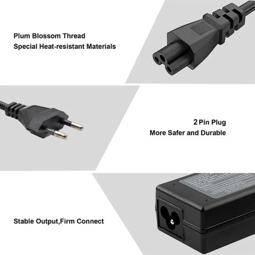 - Entrada: AC 100 - 240 V 0,9 A 50-60 Hz; Salida: 19,5 V 2,31 A; Potencia de salida: 45 W; Punta de salida: 4,5 mm x 2,7 mm; Longitud del Cable: 1,5 m; Peso neto: 136 g