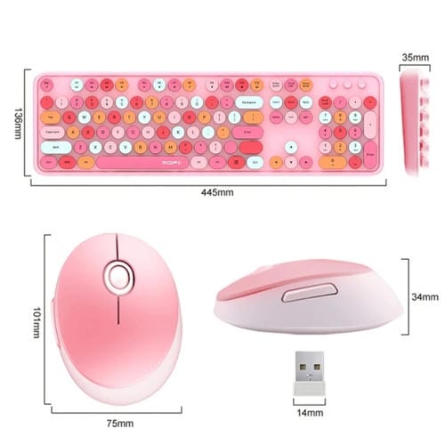 - 1x Set Teclado y Ratón Inalámbricos Mofii Sweet Punk para Oficina (Versión Mixta Púrpura)