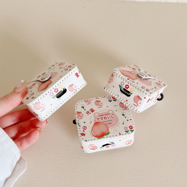 For AirPods 1/2 PU Leather Wireless Earphone Case(Peach)