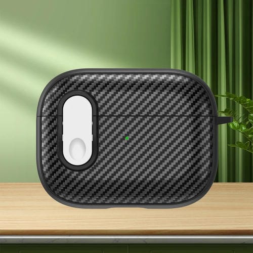 For AirPods Pro 2 Wireless Earphone Case Carbon Fiber Texture with Security Lock (White)