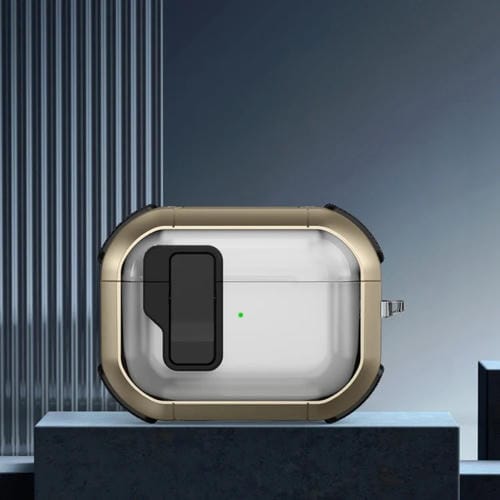 For AirPods Pro 2 Thunder Wireless Earphone Case Clear Protective Cover with Magnetic Switch (Gold)