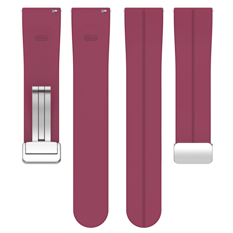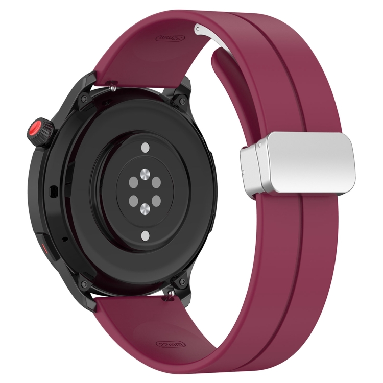 Correa de Reloj Amazfit GTR 4 Silicona con Cierre Plegable Magnético Hebilla Plateada (Rojo Vino)