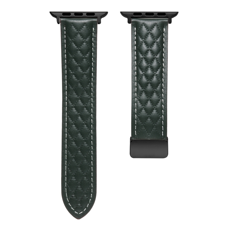 Correa de Cuero para Apple Watch 4 40mm con Hebilla Plegable y Diseño de Rombos (Verde)