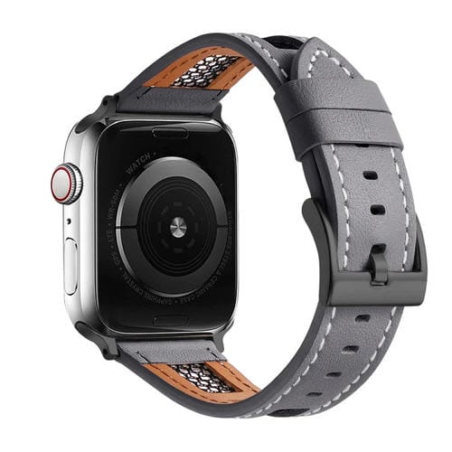 Correa para Apple Watch SE 2022 de Cuero Genuino Piel de Becerro Malla 44mm (Gris)
