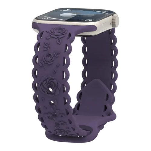 Correa de Silicona para Apple Watch Se 2023 44mm con Relieve de Rosa 3D (Cereza Carmesí)