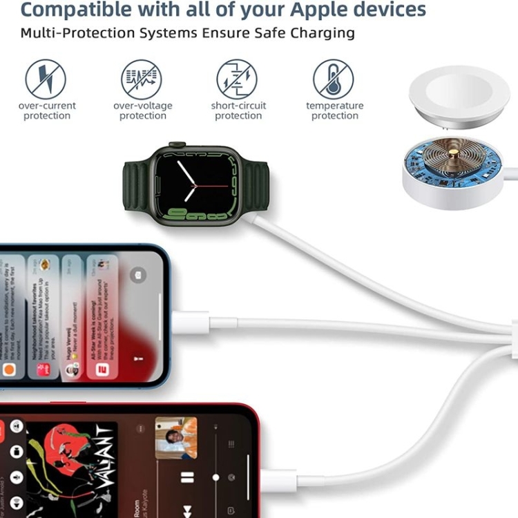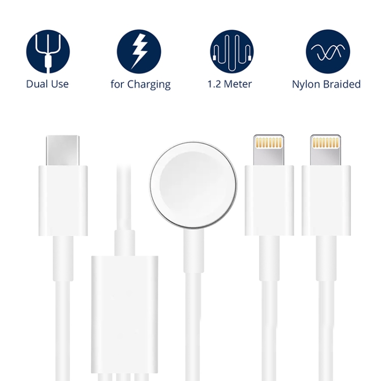 5. Este cable de cargador triple es adecuado para cargar teléfonos inteligentes y relojes, además de mantener una salida estable, mientras que la longitud del cable de 4 pies garantiza que sea cómodo de usar.