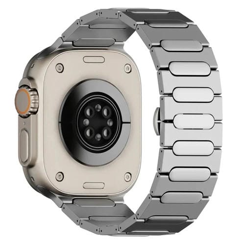 Correa de Reloj para Apple Watch Ultra 49mm Aleación de Titanio con Hebilla de Mariposa Ovalada (Plata)