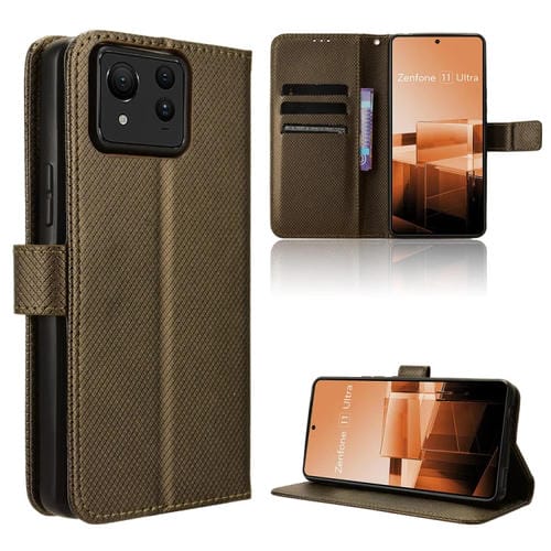 Funda de Cuero para Asus Zenfone 11 Ultra con Textura Diamond (Marrón)