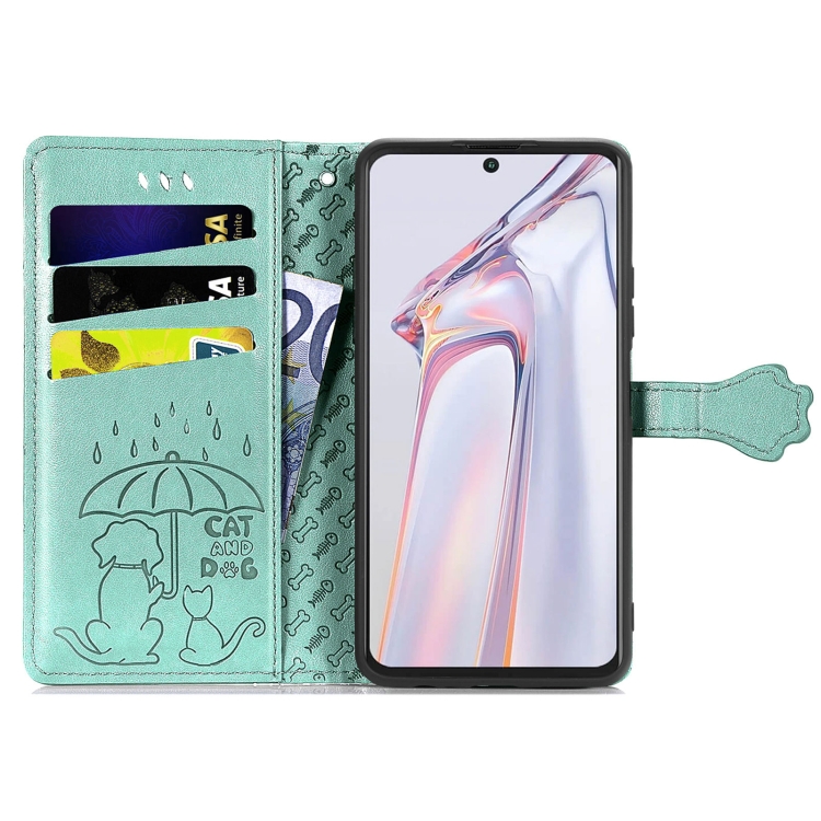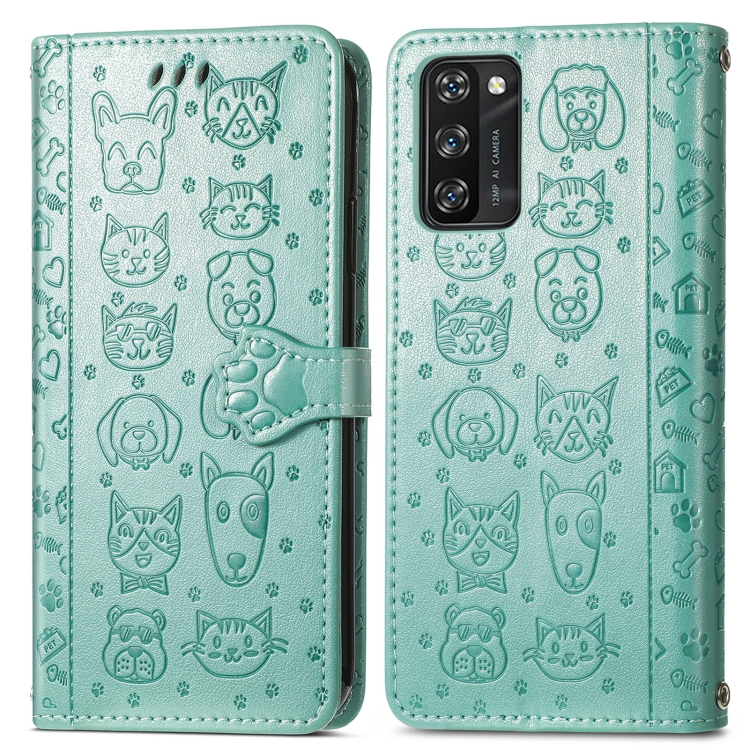 Funda para BlackView A100 con Estampado de Gato y Perro, Cuero Horizontal, Soporte, Tragamonedas y Cordón (Verde)