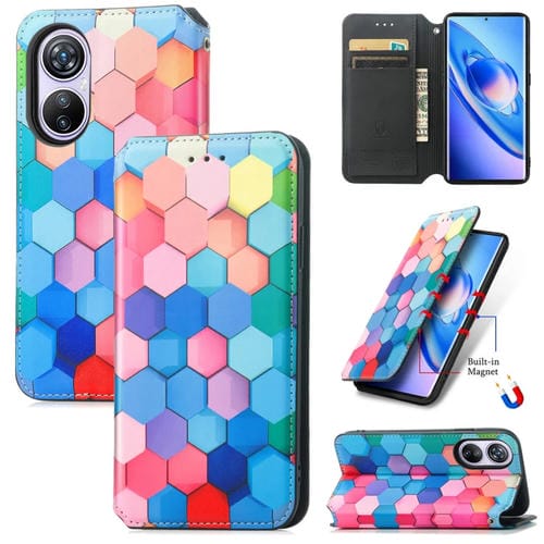 Funda de Cuero Magnética Caseneo para BlackView A200 Pro (Cubo Colorido)