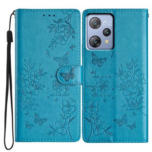 Funda para BlackView A53 / A53 Pro Cuero con Relieve Flor y Mariposa (Azul)
